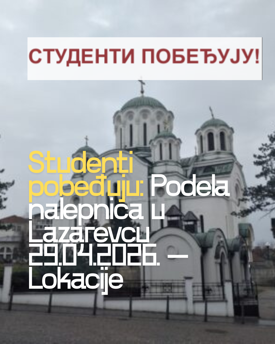 U sredu 29.04.2026. po celoj Srbiji organizovana je podela nalepnica „Studenti pobeđuju“.